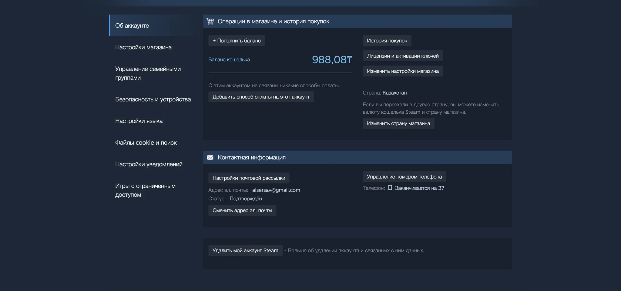 Когда пользователь создает аккаунт, Steam автоматически привязывает его к конкретной стране на основе нескольких ключевых параметров: IP-адреса, платежных реквизитов и фактического местоположения устройства. Свой регион можно посмотреть в разделе «Об аккаунте». Без смены платежного средства смена гео невозможна.